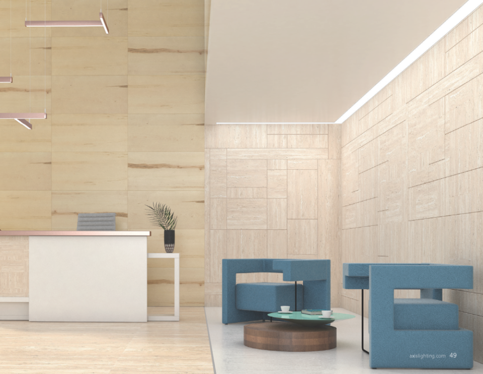 Sculpt is a 1.5” illumination system engineered by Axis to provide Geometric Lighting, in addition to standard linear lighting configurations. Geometric Lighting is a new design model that lets you choose from an exclusive palette of ceiling kits to create an infinite number of lighting configurations, regardless of ceiling or mounting type.