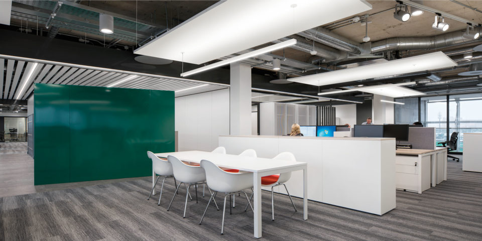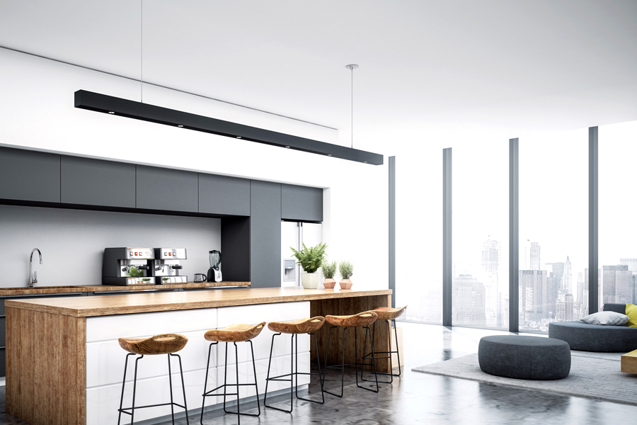 Kwyet is a combination of OCL’s Tubie luminaire and sound absorbing 12MM acoustic fins. This acoustic fixture is 36″ in diameter in either a cone, angle or ellipse shape. The evenly illuminated architectural cylinder distributes light flawlessly.